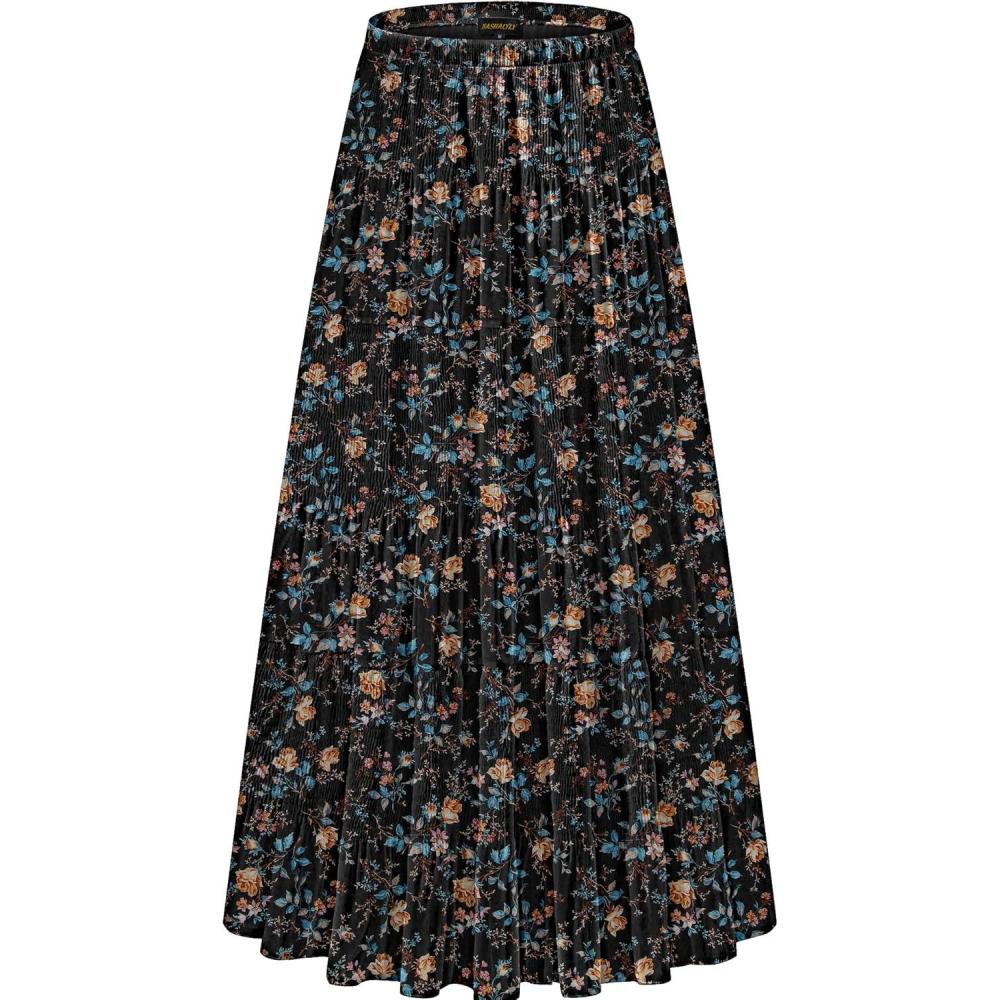 Be the first to review “NASHALYLY Women’s Chiffon Elastic High Waist Pleated A-Line Flared Maxi Skirts(Black Gold Floral)”