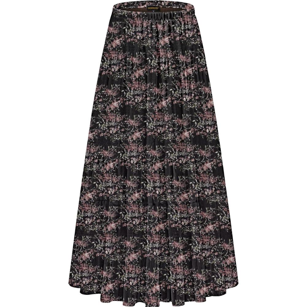 Be the first to review “NASHALYLY Women’s Chiffon Elastic High Waist Pleated A-Line Flared Maxi Skirts(Brown Pink Floral)”