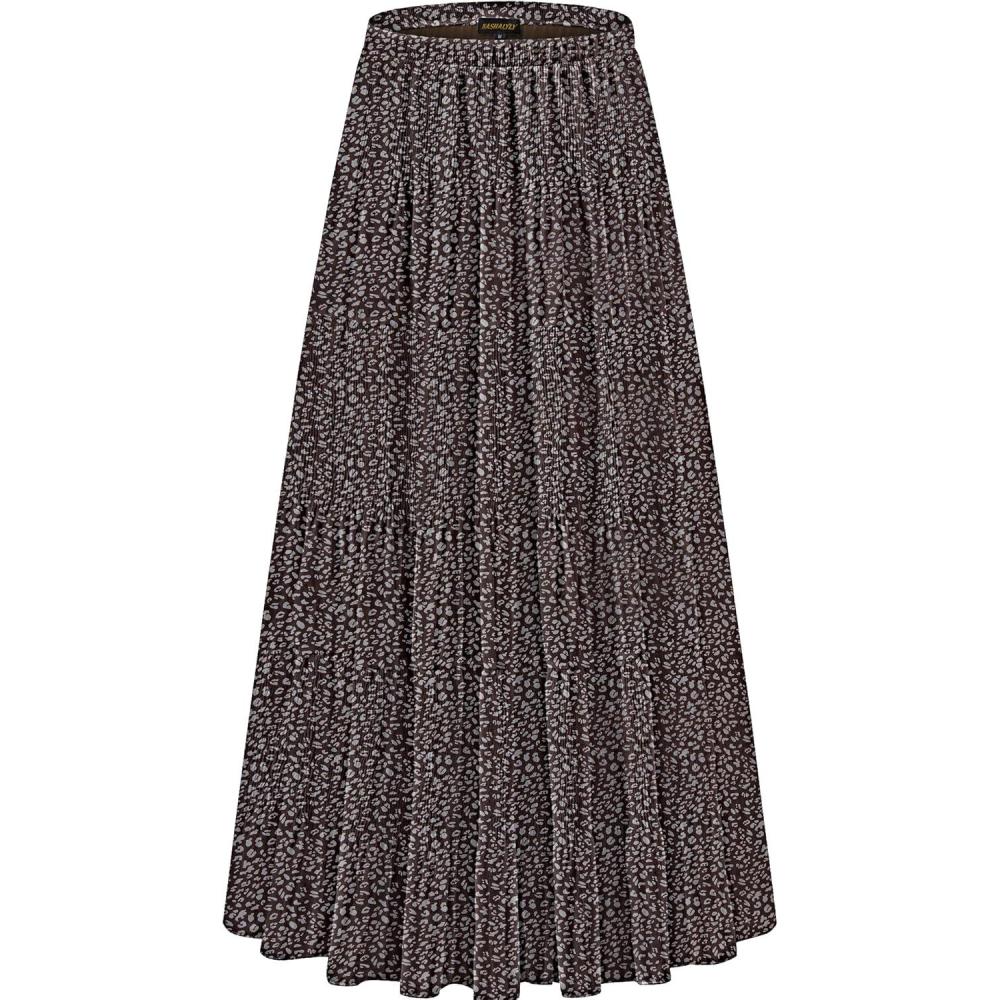 NASHALYLY Women's Chiffon Elastic High Waist Pleated A-Line Flared Maxi Skirts(Coffee White Dot)