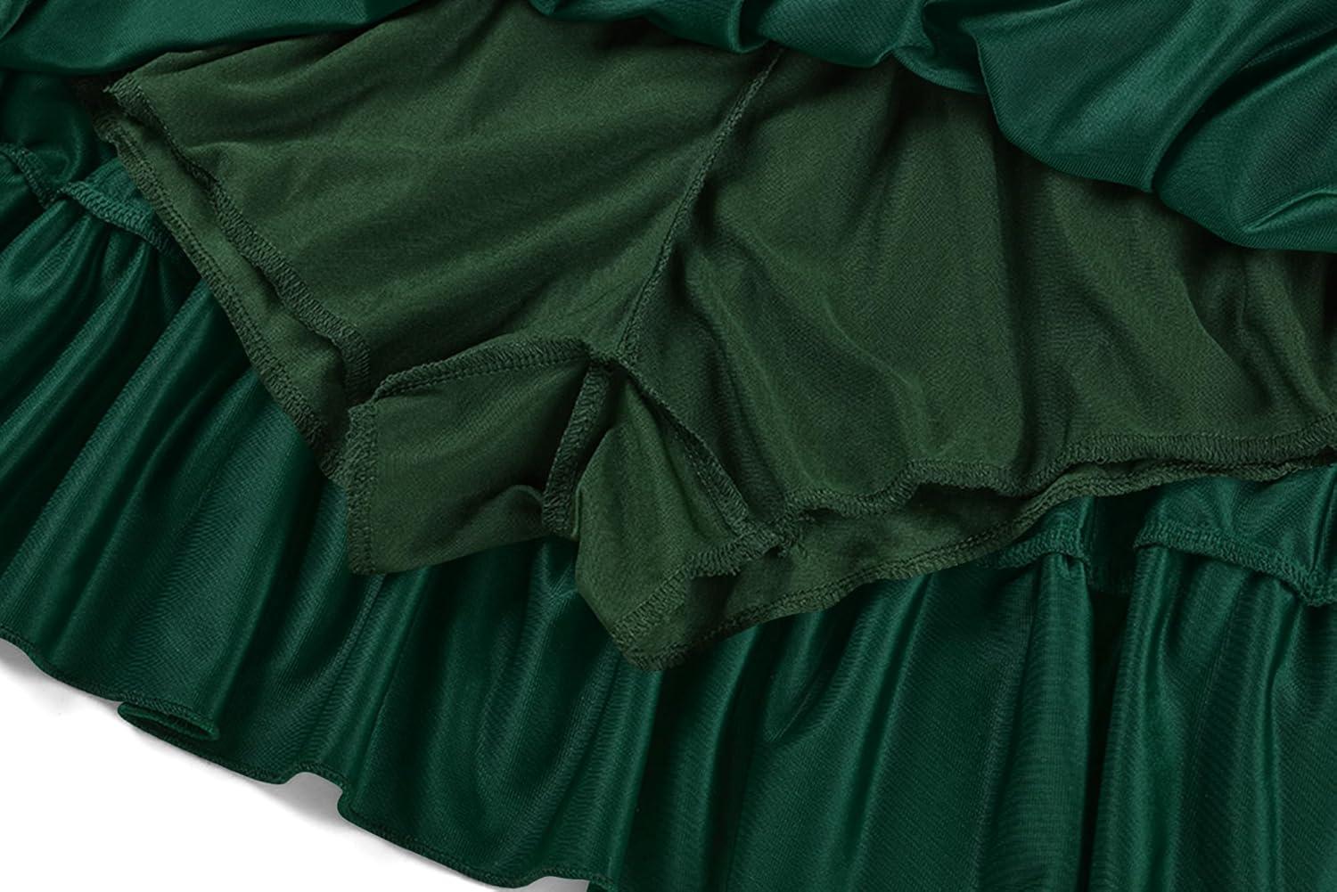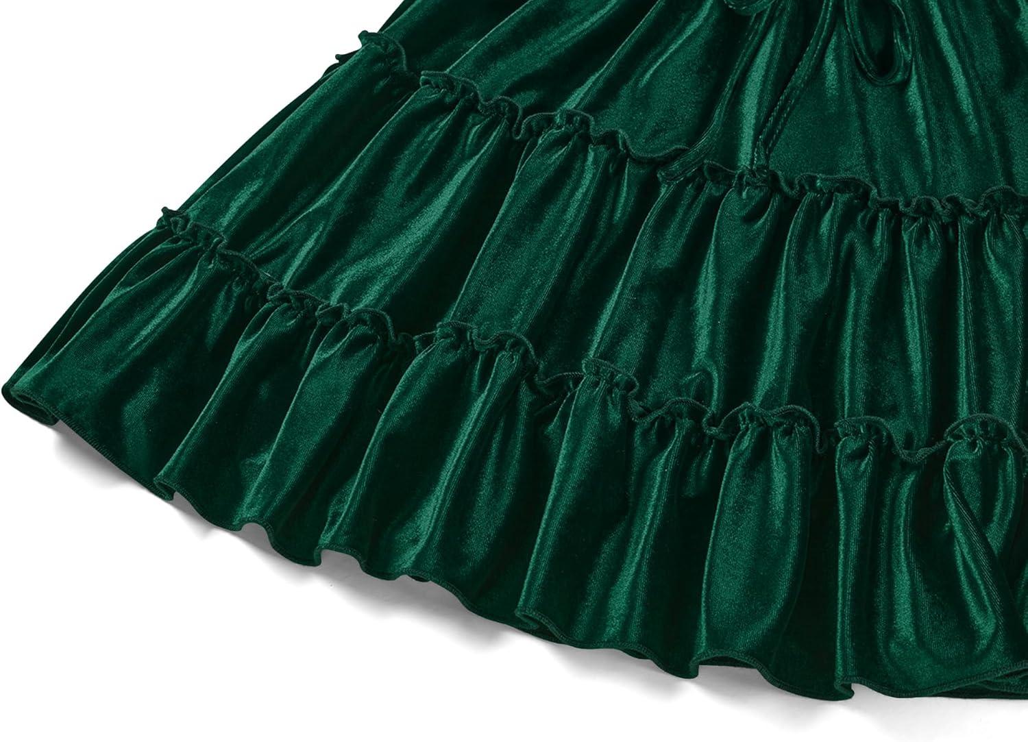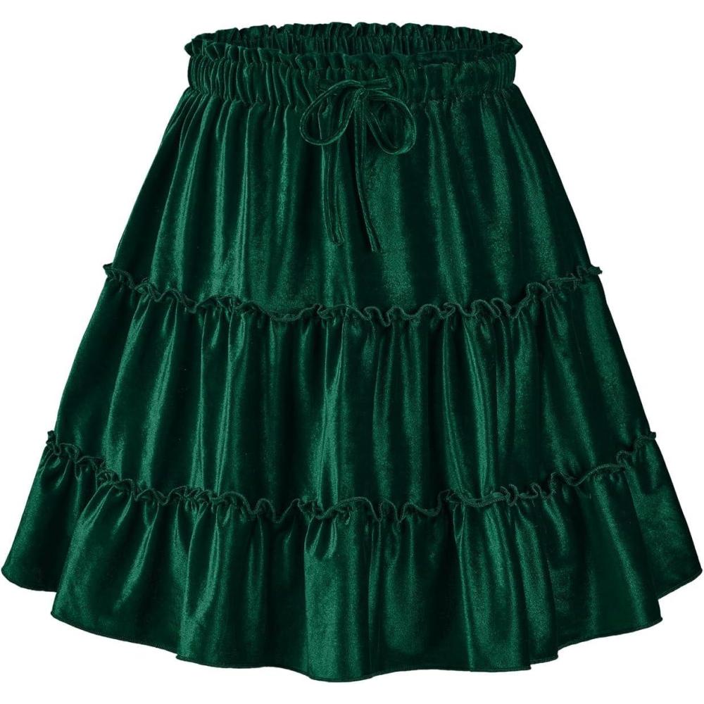 NASHALYLY Women’s Summer Boho Floral Print Mini Skirt High Waist Drawstring Tiered Skirts(Green Velvet)