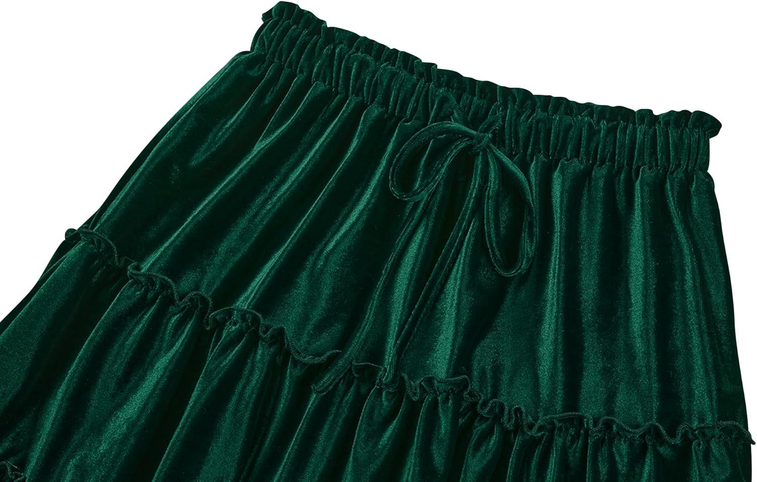 NASHALYLY Women's Summer Boho Floral Print Mini Skirt High Waist Drawstring Tiered Skirts(Green Velvet)